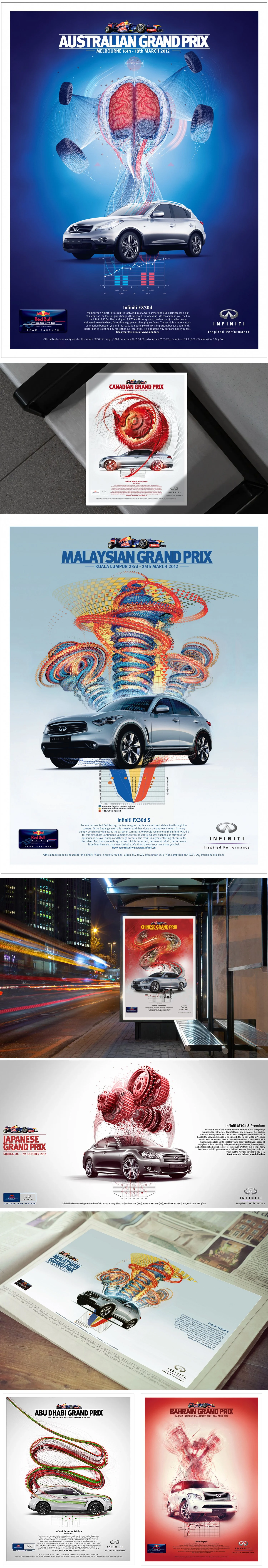 Infiniti (the luxury performance arm of Nissan cars) had partnered with the Red Bull Racing F1 team in 2012. For Infiniti, performance wasn’t just about statistics; it was about sensation. They needed a series of print ads to promote their partnership with Red Bull and, at the same time, their brand philosophy.